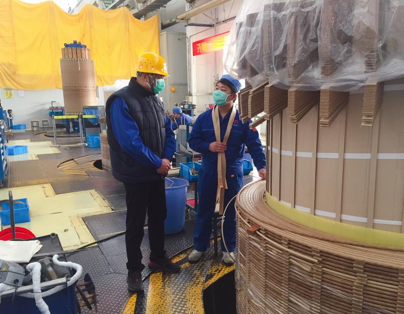 为深入落实保变电气党委工作部署和党委书记、董事长文洪,党委副书记、总经理刘淑娟在疫情防控与复工复产会议上的讲话精神,3月3日上午,党委副书记、工会主席赵永强率队到本部绝缘车间、线圈车间、铁心车间、总装车间,对疫情防控措施落实情况进行督导,了解掌握复工复产进展情况。