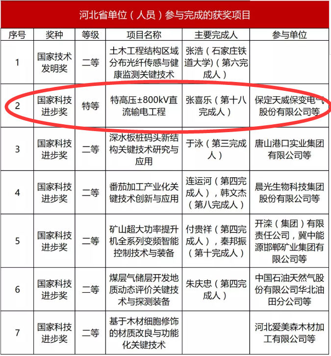 保变电气参与的特高压直流项目获国家科技进步奖特等奖