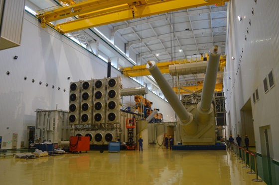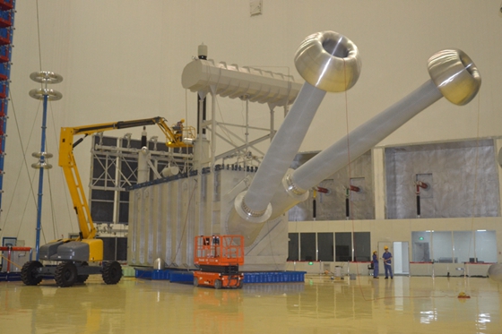 T2特高压试验大厅正在进行扎鲁特-青州±800kV特高压直流输电线路工程高端换流变试验