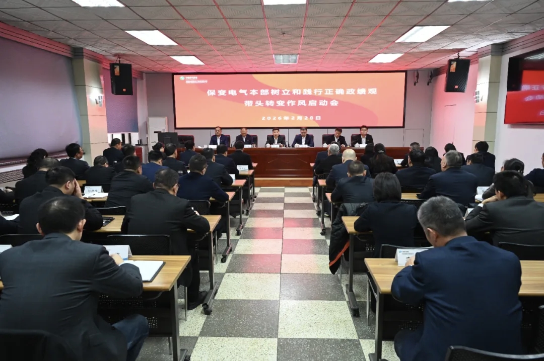 近日,保变电气本部召开“树立和践行正确政绩观、带头转变作风”活动启动会,深入贯彻落实习近平总书记关于加强党的作风建设、树立和践行正确政绩观的重要论述,进一步加强和改进领导人员的工作作风,大力弘扬“马真精神”和“四特精神”,扎实推动学习教育走深走实,为实现“十五五”良好开局,走好高质量发展之路提供坚强组织保障和作风保障。公司党委书记、董事长许涛出席并讲话,党委副书记、董事、总经理刘东升宣读《保变电气本部树立和践行正确政绩观、带头转变作风工作方案》,公司其他领导班子成员出席会议。